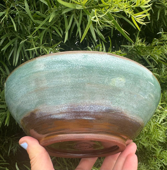 Red Sand Beach Waves Wide Low Bowl, Hand-painted ombré glazes on Terra Red Clay
